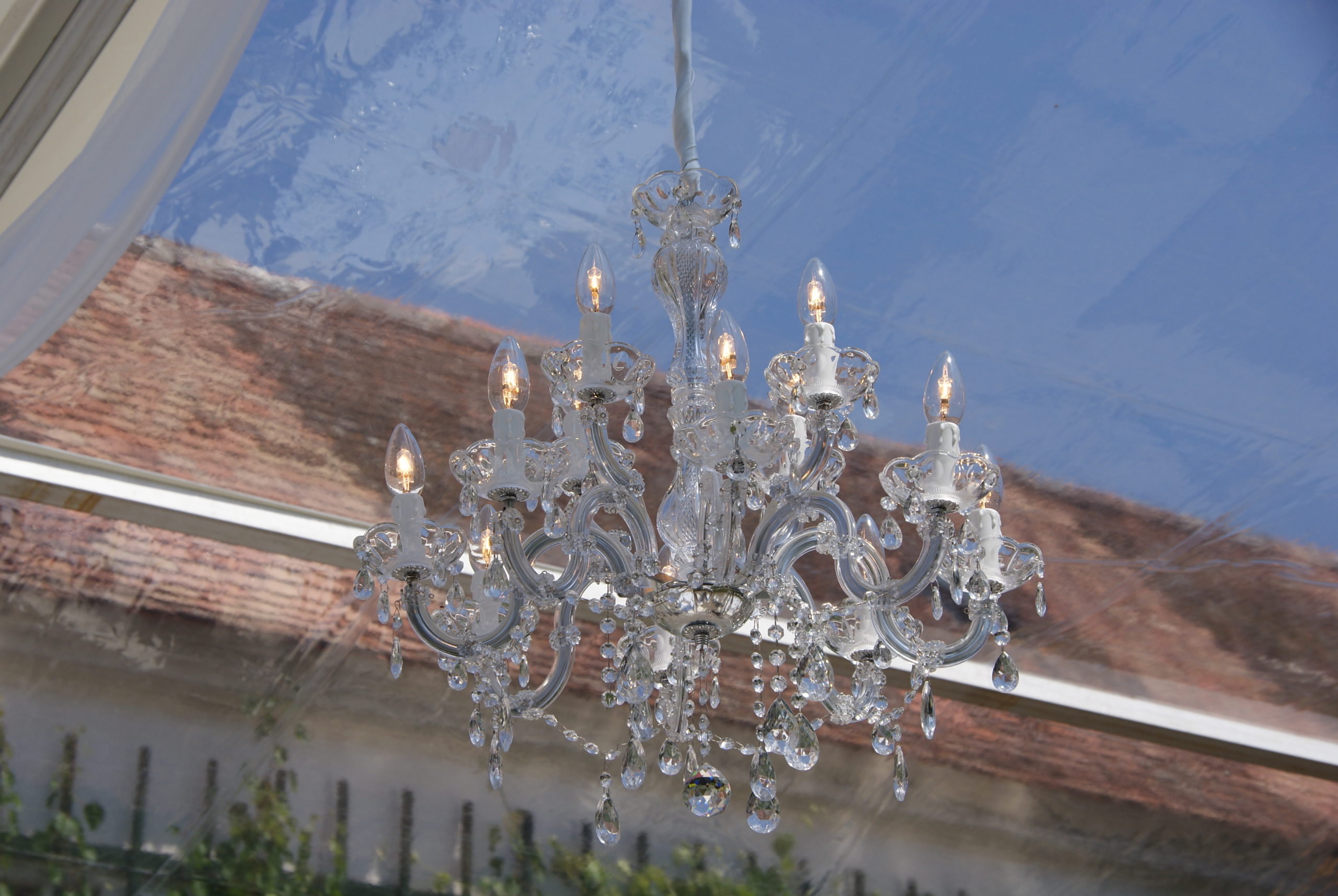 Für eine Hochzeit im Rosengarten des Schloss Manhartsberg stellten wir ein Festzelt mit 10x25m und volltransparentem Dach zur Verfügung. Für den DJ und Ansprachen wurde eine kleine PA integriert und für die Einspielung von Hochzeitsfotos wurden Led TVs aufgestellt. Im Zeltdach wurden via Tentclamps div. Beleuchtungen angebracht um die Tanzfläche für die Feiernden bunt gestalten zu können. Unter dem Dach wurden Rundtische und Bankettstühle mit Hussen aufgestellt. Im Garten verteilt fanden sich Led Bars für die indirekte Ambientbeleuchtung unter den Bäumen und im Zelt "schwebten" die Kristallluster.